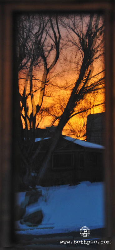 Anyone who knows me well, knows that I don’t function all that well in the early morning. It usually takes a good hour for the ‘fog’ to lift and for my brain to function properly. But this morning, Mother Nature put on quite a show and I was compelled to grab my camera and get creative, despite the early hour. You may recall that I captured another beautiful sunrise earlier this year (see January 23rd here). I took the previous photo from my front porch looking east through the neighborhood trees. I didn’t want to repeat the same composition as last time, so I challenged myself to find a new way to capture the glorious morning. My solution was to photograph the sunrise as it reflected in the windows of my house (changing my locale was out of the question – I was still in my slippers and ‘jammies!) Although my style typically leans towards tack sharp photos, I do like how the distortions of the glass and soft focus lend a dreamy quality to these images.