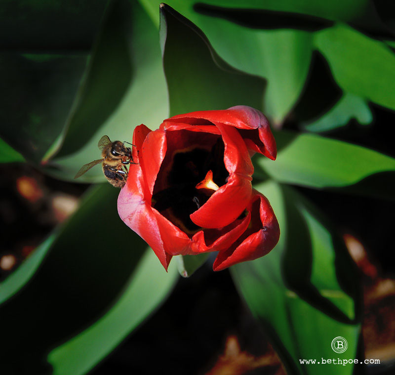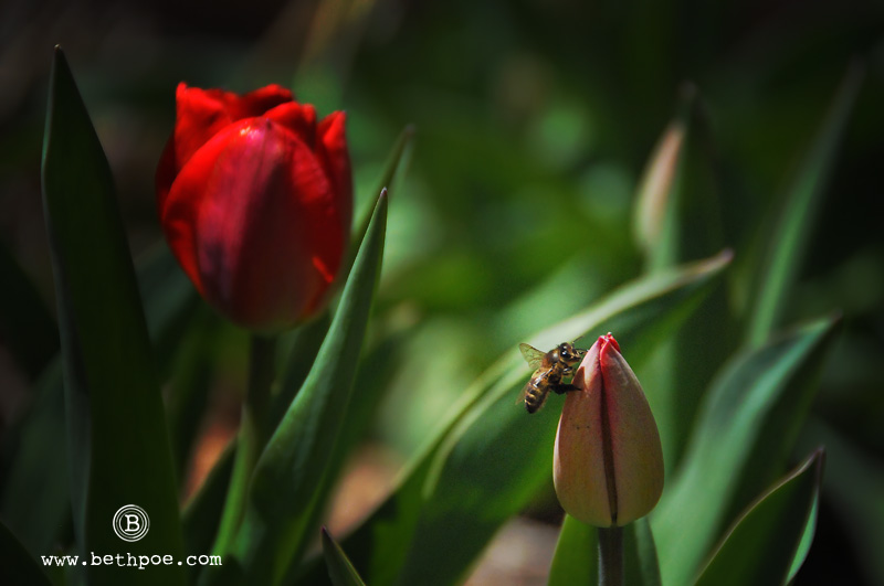 A bee visited my garden today – the very first one of the season. He seemed so anxious to fill his belly with nectar and he flew fervently from tulip to tulip in a very focused and determined manner. He must have been quite frustrated that, due to the erratic weather lately, so many of my flowers have not opened up yet. However, things do look promising for the weekend with sunny skies and 70 degree temperatures predicted. So perhaps the next time this little fellow visits my garden, he will have a greater display of spring’s glory on which to feast.