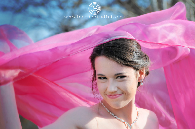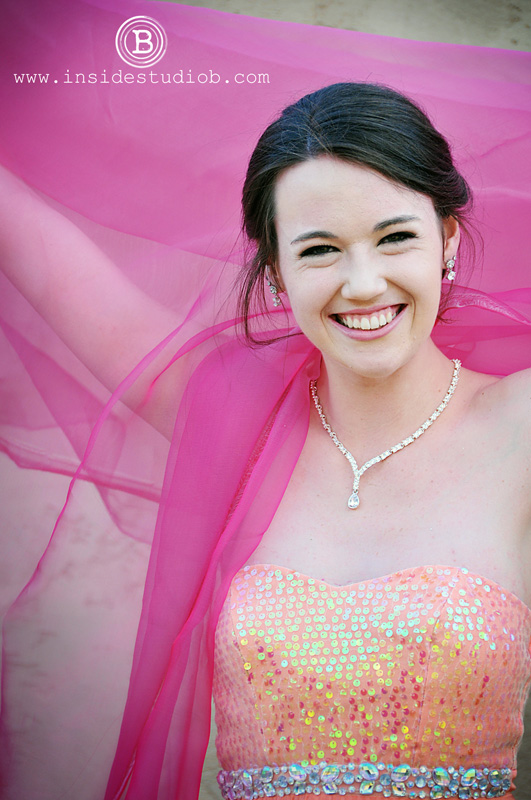 Senior prom.  What a fabulous night to be both a parent and a photographer!  Those who know her, know she is not much of a ‘girly girl’, so it was so much fun to see her get all dressed up and flaunt her feminine side.  I knew we weren’t going to do ‘traditional’ prom photos – that’s not her thing or mine.  So, to mix things up, I grabbed a piece of long, flowing iridescent pink fabric and told her to just have fun.  What a delight to watch her personality shine through.