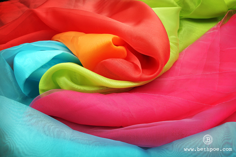Weeeeeeee – Color, Color, Color! Today, I purchased yards and yards of colorful, iridescent fabric to use as decoration for my daughter’s graduation party in a few weeks. What a feast for the eyes! I just couldn’t resist photographing the swirling hues of red, orange, lime green, turquoise and fuchsia. These festive colors virtually shout out ‘Let’s Celebrate!’