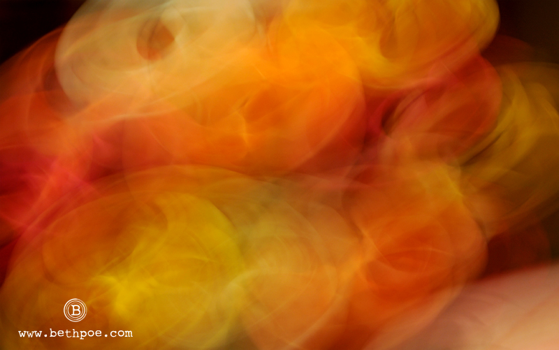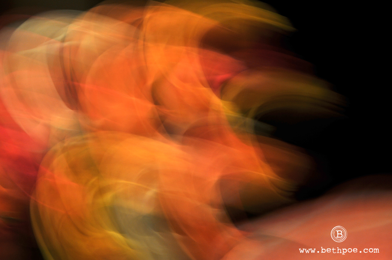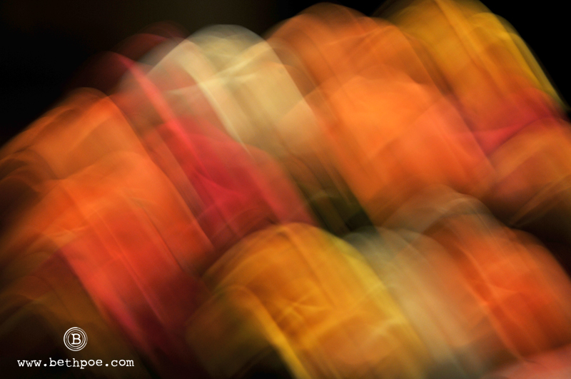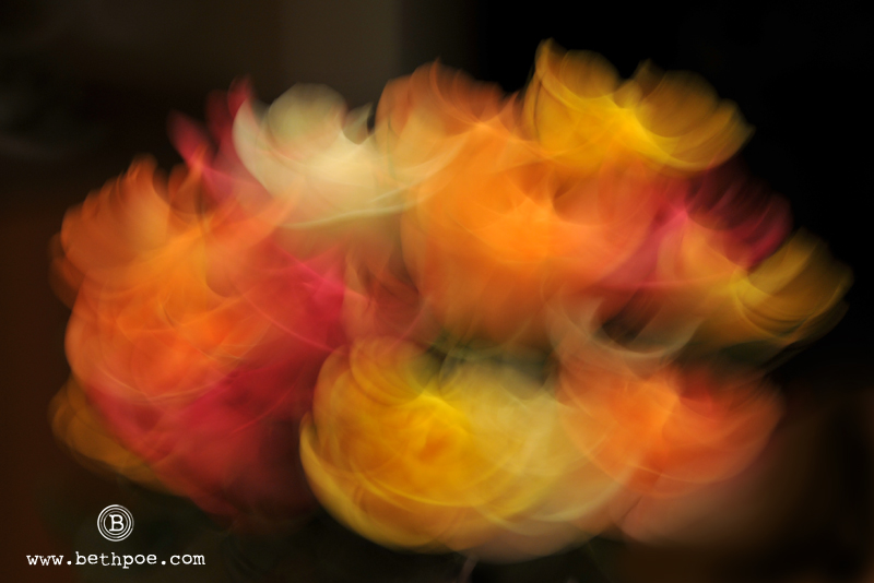 For comparison purposes, I included at the bottom of this post an image of the flower bouquet in-focus.  The in-focus photo reads as a simple snapshot, whereas I find that the blurred photos are much more compelling.