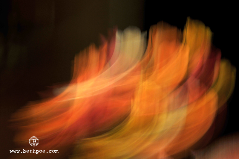 My tendency is to favor tack sharp images in my photography, so tonight I decided to step out of my comfort zone and play around with motion blur.  To be honest, this decision came about rather by accident, as I was struggling to photograph a bouquet of flowers in dim lighting and I was frankly too lazy to grab a tripod :-).  So I embraced the shake of my hands, slowed down my shutter speed even more and just had some fun.  I have always said that laziness breeds efficiency.  Well, this is a case where laziness bred creativity…