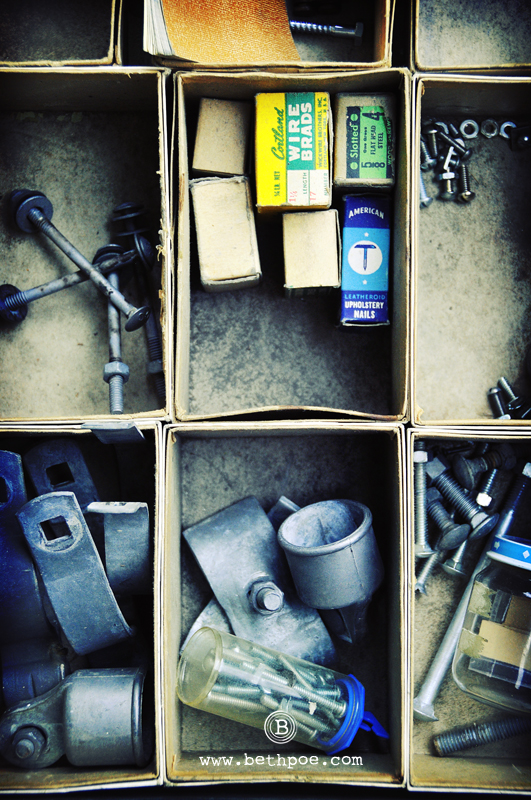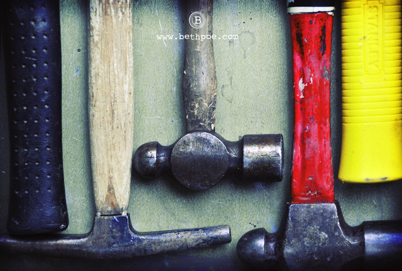 I live in an old house with plenty of character. The house itself has been randomly updated and added on to so many times that it is beginning to resemble something out of an Escher drawing – stairs leading to various levels in all directions – at times you don’t know if you are going up or going down. The one place that hasn’t really been touched since its original construction is the garage. It is a relic from the 50’s – flat roof, cinder block walls, and old tools from a bygone era. Yep, this place epitomizes the word ‘grunge’, and so it was the subject of my Project 365 today.