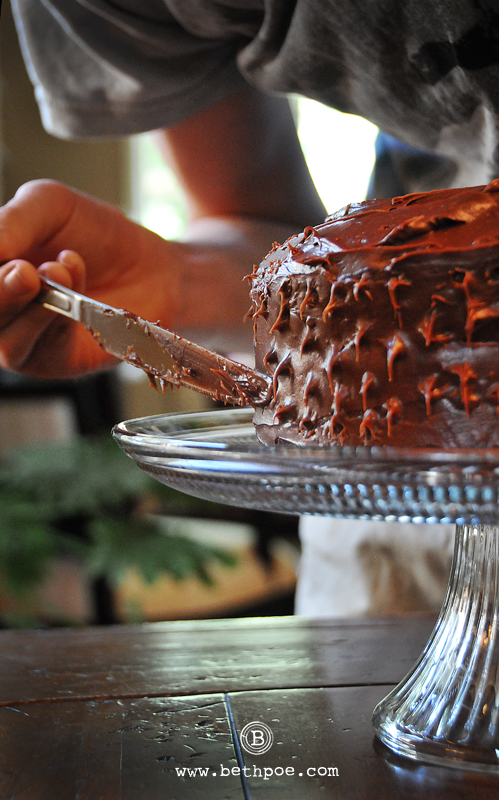 For as long as I can remember my husband has requested ‘Gram’s Lemon Cake’ on his birthday. As a child, he was only able to get this special treat when he visited his Gram, who lived at sea level; You see, the recipe for this lemon cake is very finicky and it does not work well in the high altitude of Colorado. So, ‘Gram’s Lemon Cake’ became a very rare treat indeed. However, many years ago I got hold of the recipe and I worked diligently to convert the recipe so that it would work at high altitude. Many years and many caved-in disasters later, I perfected the recipe and it has been a staple on his birthday ever since. So, you can imagine my surprise when this year he told me that instead of Gram’s cake, he wanted a good old-fashioned, double layer chocolate-on-chocolate cake. At first, I thought he was joking. My kids thought he was joking. Even the dogs thought he was joking. But he wasn’t. And it was his birthday, so we gave him what he wished for.