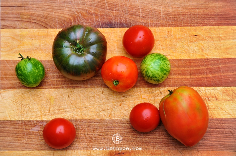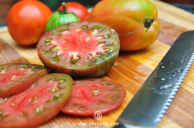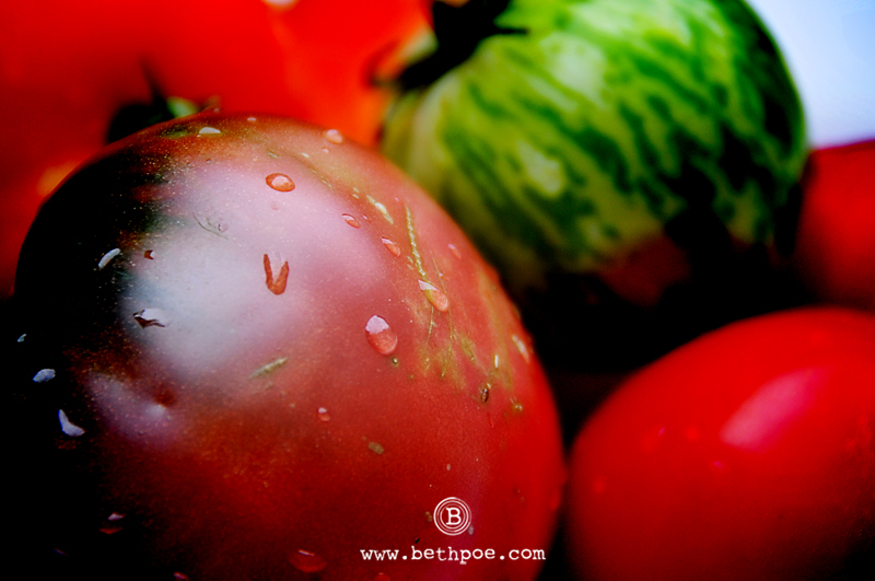 Continuing with my ‘taste of summer’ theme from yesterday, today I am focusing on heirloom tomatoes. Oh, how absolutely delicious they are… juicy, sweet, and oozing with flavor. They simply put the common hot house tomato to shame. I wish I could claim to have grown these particular beauties myself, but I did not. Instead I paid an arm-and-a-leg for them at the market today. No matter. They are worth their steep price. Soon I will sink my teeth into their savory deliciousness and I will relish in my wise investment as their tangy juice slowly drips down my chin. Mmmmmm. Tastes like summer.