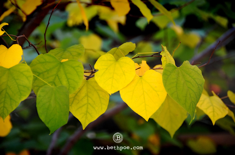 The heart-shaped leaves our Eastern Redbud tree turn a brilliant yellow each fall, as if each leaf is bursting with love for the season.