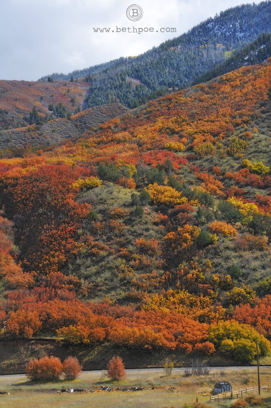 I am truly in love with the autumn we are having here in Colorado. The weather has been spectacular, and the colors beyond compare. This morning, we woke up to a beautiful dusting of snow. The bright, white blanket made the fall colors all the more vibrant and everything felt magical. To make the day even sweeter, we set off for the mountains to spend a relaxing weekend. The drive from Denver took us from the snow dusted front range to the wildly beautiful central mountains, which are bursting with autumn’s glory. Our destination was Glenwood Hot Springs, where we spent a couple of days relaxing and soaking in the natural hot springs pool. Pure bliss!