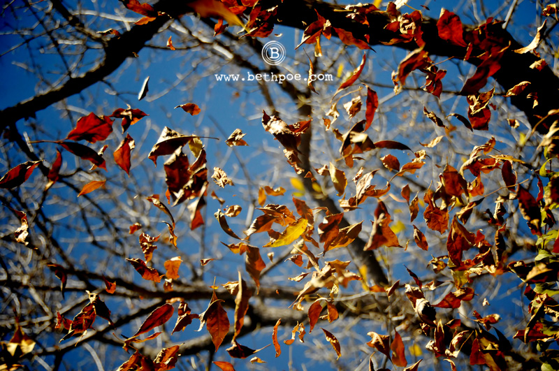 1. Thanks, Nora. It was not easy capturing the falling leaves, and I ended up having to lie on the ground while my husband tossed leaves over me – messy, but it worked okay. I was hoping for a little more ‘mood’ in the images, but I after a few mouthfuls of leaves, I just took whatever I could get!