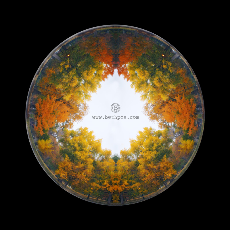 Today was another cold, grey day, which is very unusual for sunny Colorado.  I went over to the park this morning and took some photographs, which I used as the basis of these two digital art pieces (once again, playing around with the Polar Coordinates tool in Photoshop.)  I can’t decide which of these two images I like the best…