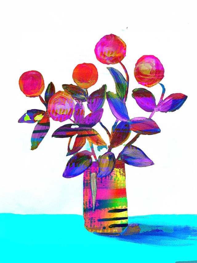In the classroom, the painting was serviceable — flowers behaving as flowers should. But when I pulled it into the digital studio, restraint no longer held. I set the palette ablaze, overlaid texture, and let the strokes collide until the flowers no longer sat still — they sparked, they ignited.
